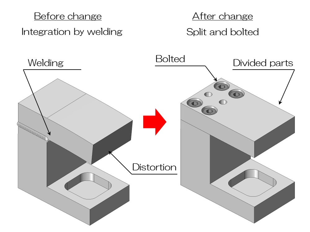 Alternatively, it is also effective to change the design to avoid welding near areas where deformation is not desired, and to weld in areas where distortion is less likely to occur.